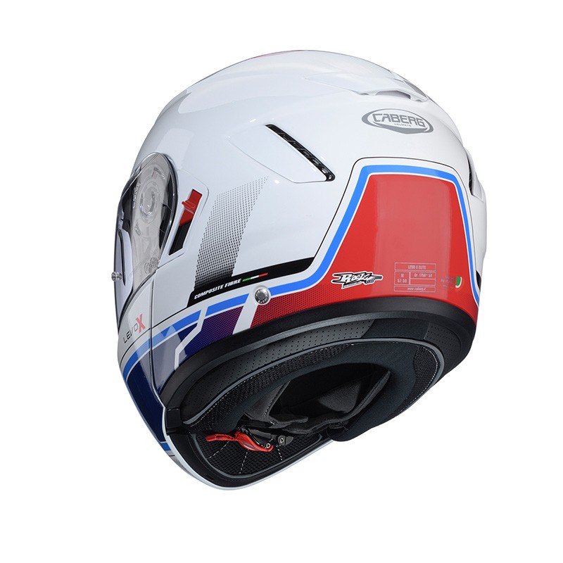 LEVO X è il casco apribile di Caberg realizzato per il mototurista più esigente con soluzioni tecniche all'avanguardia e design innovativo. La calotta esterna è realizzata in fibre composite oppure, nella versione LEVO X CARBON, interamente in fibra di carbonio.Le due misure di calotta esterna permettono una perfetta proporzione tra il volume del casco e la taglia del motociclista. LEVO X si caratterizza per la doppia omologazione P/J avendo superato sia i test previsti dalla normativa ECE 22.06 per i caschi integrali (P) che quelli in configurazione jet (J), con mentoniera aperta. Il sistema di ventilazione, costituito da due presa d'aria frontali e due estrattori posteriori, offre un comfort ottimale anche nelle condizioni più estreme attraverso i canali presenti nella calotta interna. Tra le peculiarità esclusive di LEVO X rientra l'ampia visiera che permette al motociclista di contare su un campo di visione tra i più estesi della sua categoria (definito panoramic ultra-wide visor), garantendo un'apertura frontale della visuale pari a 82°. LEVO X è inoltre equipaggiato di serie con la lente antiappannante Pinlock Max Vision ed è dotato di visiera parasole integrata, Double Visor Tech, facile da manovrare anche indossando guanti. Gli interni, completamente estraibili e lavabili, sono realizzati con i migliori tessuti ad alta traspirazione e trattati Sanitized. Le guance hanno un profilo che consente di indossare occhiali con estrema facilità .LEVO X è predisposto per alloggiare il comunicatore Caberg PRO SPEAK EVO ed i principali comunicatori universali presenti sul mercato. per garantire la massima sicurezza LEVO X ha superato tutte le prove richieste dalla normativa ECE 22.06 anche con il comunicatore montato all'interno del casco.CARATTERISTICHE-Calotta:FIBERGLASS-Interno:Completamente estraibile e lavabile realizzato con tessuti ipoallergenici e traspiranti.-Ventilazione:Due prese d'aria frontali e due estrattori d'aria posteriori regolabili facilmente anche indossando guanti.-Visiere: DVT (Double Visor Tech) Trasparente ultra-wide antigraffio con Pinlock Max Vision di serie-Visiera parasole antigraffio integrata-Sistema di ritenzione:-Fibbia a regolazione micrometrica-Omologazione:ECE 22.06 P/J-Peso:1550 +/- 50 gr.-LEVO X è prodotto in Italia.