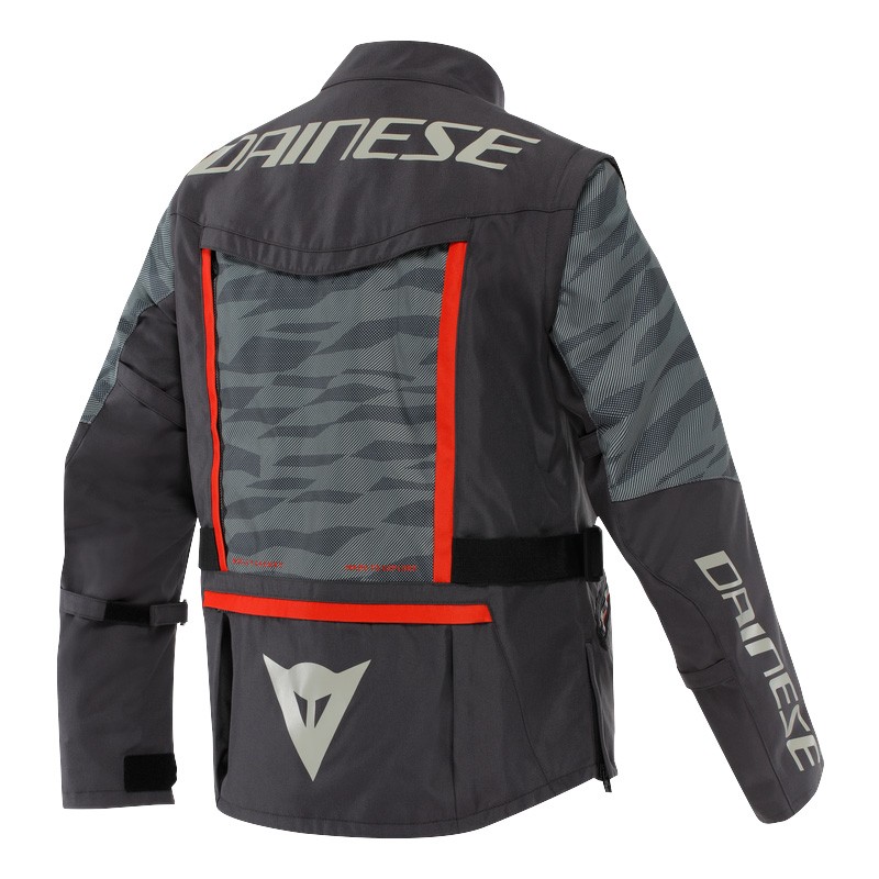 Giacca da moto in tessuto mesh traspirante ideale per la guida in fuoristrada.DESCRIZIONEGiacca da moto in tessuto mesh traspirante dedicata agli amanti dell'off-road.Estremamente modulare e versatile, questa giacca è pensata per chi utilizza la propria moto su sterrato in estate e nella mezza stagione, grazie alle ampie ventilazioni sul petto e sulla schiena e alla possibilità di rimuovere le maniche, caratteristiche che rendono questo capo l'ideale anche nei climi più caldi o quando la guida si fa più intensa in fuoristrada.Sterrato Tex Jacket presenta una vestibilità compatibile con pettorine e safety jacket offroad, qualora si rimuovano i protettori compositi di spalle e gomiti certificati secondo la norma EN 1621.1 Livello 2 di cui è dotata. Il livello protettivo di questo capo da moto, certificato secondo la norma EN 17092 A, può essere ulteriormente incrementato grazie alle tasche per alloggiare il paraschiena di tipo G e il protettore toracico Pro-Armor Chest 2 PCs. Oltre alle utili tasche sul fronte, sulla manica sinistra e alla tasca interna impermeabile, la giacca è dotata sul retro di due tasche, una esterna dove si possono riporre agevolmente le maniche una volta rimosse, e una dedicata alla sacca idrica, dotata di apposito aggancio interno.Il pratico loop per agganciare i pantaloni alla giacca e la possibilità di regolare il fit su polsi, fianchi e in vita completano la dotazione di Sterrato Tex Jacket.CARATTERISTICHE1 tasca cargo sul lato posteriore1 tasca interna impermeabile2 tasche esterneCompatibile con roost guard e giacche di sicurezza offroadCapo da moto certificato secondo la norma EN 17092 ATasca per paraschiena G1, G2Tasca sulla manicaTasche per Pro-Armor Chest 2 pz.Tessuto esterno in poliestereManiche rimovibiliPredisposizione per kit waterbagERGONOMIAPassante per unire giacca e pantaloniRegolazione delle manicheRegolazione su polsi, girovita e fianchiPERFORMANCE SHOCKProtettori compositi rimovibili certificati secondo la norma EN 1621.1 sui gomitiProtettori compositi rimovibili certificati secondo la norma EN 1621.1 sulle spalleTEMPERATURAPrese d'aria di grandi dimensioni su torace e schienaFodera in mesh traspirante.