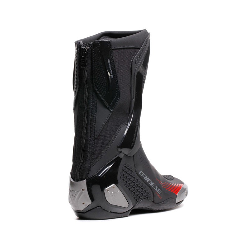 Realizzati in microfibra e tessuto D-Stone con sistema D-Axial in TPU ad alta aderenza, questi stivali da corsa, ispirati al top di gamma Dainese Axial 2, garantiscono il massimo comfort e alti standard di protezione, mantenendo un design sportivo e attraente. Il tessuto elastico D-Stone assicura massima resistenza e facilità di calzata. Gli slider in magnesio su punta e tallone sono sostituibili, una soluzione che consente anche la sostituzione della cerniera in caso di rottura. I massimi livelli di sicurezza per stinco e tallone sono garantiti dal sistema D-Axial, che permette un migliore assorbimento degli urti in caso di caduta e presenta anche un motivo grafico esterno che richiama il Pro-Amor 2. Le innovative suole asimmetriche Groundtrax® con aree differenziate per cambio e freno sono progettate per garantire aderenza e resistenza al calore. Un vero campione di leggerezza e prestazioni, per esprimere al massimo il proprio potenziale sia su strada che in pista.PANORAMICANuovi stivali da corsa e strada in microfibra e D-Stone con sistema D-Axial in TPU e slider in magnesio sostituibili.CARATTERISTICHESuola Groundtrax per corse estremeChiave a brugola fornitaProtezione cambio in TPUERGONOMIAChiusura con cerniera sul retroGiunti flessibili per un comfort extraSistema di allacciatura rapidaMATERIALI PRINCIPALITessuto D-StoneTomaia in microfibraPROTEZIONE DAI URTIStivali certificati CE - Cat. II - EN 13634 StandardSistema D-Axial in TPUCopertura del tallone in magnesio, rimovibile e sostituibileInserti in magnesio sul lato esterno e sul talloneSlider in magnesio sostituibile (Kit slider stivale Magnesio 1999948, Kit slider stivale Acciaio Inox 1999885, Kit slider stivale plastica 1999954)Fascia interna di ritenzioneInserto ammortizzante sul talloneTEMPERATURAFodera in jersey doppio strato.