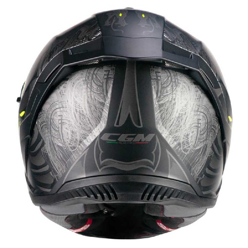 Il 363 SHOT è la risposta di CGM al motociclista che punta ad un casco race-oriented. La calotta esterna e l'innovativo spoiler posteriore sono stati progettati per massimizzare l'efficienza aerodinamica alle alte velocità . Realizzato in due misure di calotta esterna presenta un sistema di termoregolazione dell'interno del casco, composto da tre aree di canalizzazione che garantiscono un continuo flusso d'aria. La visiera esterna, predisposta Pinlock 70, è basculante per una perfetta aderenza alle doppie guarnizioni perimetrali ed insieme al blocco in posizione chiusa assicurano silenziosità e comfort di guida. Il 363 è inoltre dotato di visiera interne parasole a scomparsa. Il comparto interni, è composto da top termoformato esagonale, tessuti ExtraCool, bande alta visibilità , deflettore paranaso e coprimento e SOS RELEASE SYSTEM che permette un rilascio rapido dei guanciali in caso di emergenzaCARATTERISTICHE-Calotta in HPT stampata ad iniezione, i polimeri termoplastici, una volta raffreddati e induriti dopo il processo di stampaggio, garantiscono una elevata resistenza meccanica per la massima protezione dagli urti-Dimensioni Calotta Esterna: 2 - Realizzare modelli in diverse misure di calotta esterna permette di offrire una vestibilità e un comfort di calzata ottimale per tutte le taglie. -Chiusura del cinturino: Micrometrico-Omologazione: Ece 22.06-Peso da: 1550 +/-50 gr (tg.M)-Visiera con trattamento antigraffio predispsota per lente Pinlock 70 (DKS002)-Sistema di sgancio rapido della visiera-Blocco visiera che consente di fermarla saldamente in posizione quando chiusa.-Visiera solare a scomparsa-Air system: Sistema di ventilazione costituito da prese d'aria anteriori, condotti d'aria nella calotta interna ed estrattori posteriori.-Interni EXTRACOOL: tessuto traspirante e antibatterico, estremamente soffice al contatto con la pelle-Interni removibili e lavabili-SOS RELEASE SYSTEM: Sistema che permette di rimuovere rapidamente i guanciali, in caso di emergenza, mentre il casco è indossato-Interni alta visibilità -Predisposto per l'uso di occhiali da vista-Predisposizione per interfono -Deflettore paranaso e paramento
