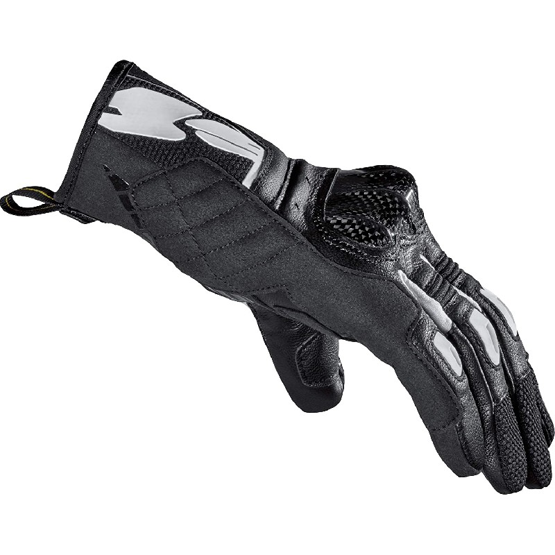 SPIDI G-Carbon sono dei guanti leggeri ad alte prestazioni, progettati per proteggere le mani sia in strada che in circuito. Nonostante il peso contenuto in soli 140 grammi, i guanti G-Carbon vantano la certificazione EN13594: 2015 KP CE, cosଠcome gli scudi in fibra di carbonio sulle nocche, per una maggiore sicurezza. I guanti sono realizzati in pelle caprina Hi-Fit (da 0,6 mm a 0,8 mm) con sezioni di pelle scamosciata sintetica per una maggiore protezione all'abrasione.La chiusura del polso avviene tramite cinturino in velcro, ed i guanti includono una linguetta studiata appositamente per una più rapida vestibilità . Il dorso, palmo e dita sono imbottiti ed offrono pannelli flessibili per consentire una naturale libertà di movimento; sono inoltre presenti prese d'aria in tessuto traforato per mantenere le mani asciutte e fresche.Da non dimenticare l' inserto in materiale touchscreen sul dito indice, ideale per utilizzare un GPS, lo smartphone ed altri dispositivi senza rimuovere i guanti.CARATTERISTICHE-Dorso realizzato principalmente in pelle di capra (0,6/0,8 mm di spessore). -Palmo in microfibra sintetica, molto resistente.-Pannelli in rete elasticizzata per una perfetta traspirazione.-Inserti in tessuto elasticizzato per una maggiore vestibilità e libertà di movimento.-Inserti a fisarmonica sulle dita.-Protettore rigido in carbonio sulle nocche per un'eccellente protezione da urti e abrasioni.-Rinforzi imbottiti strategicamente posizionati.-Punta del dito indice compatibile con touch screen.-Cinturino sul polsino per un posizionamento più facile.-Cinturino in velcro sul polso per una chiusura sicura.