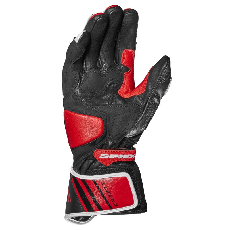 SPIDI Carbo 7 è l'ultima versione dei guanti da competizione altamente tecnici della serie Carbo, apprezzati dai piloti professionisti ai massimi livelli del motorsport in tutto il mondo, grazie alla certificazione EN 13594: 2015 KP CE di livello 1. Ogni guanto ha uno chassis in pelle di capra da 0,6 mm a 0,8 mm, ideale per la sua leggerezza e l'estrema resistenza all'abrasione ed alla perforazione. E' presente uno scudo nocche in fibra di carbonio ed un'imbottitura ad alta densità sul palmo, sul dorso e sul lato della mano. Carbo 7 presenta inoltre una chiusura a velcro sul manicotto ed un cinturino anti scalzata di sicurezza.
